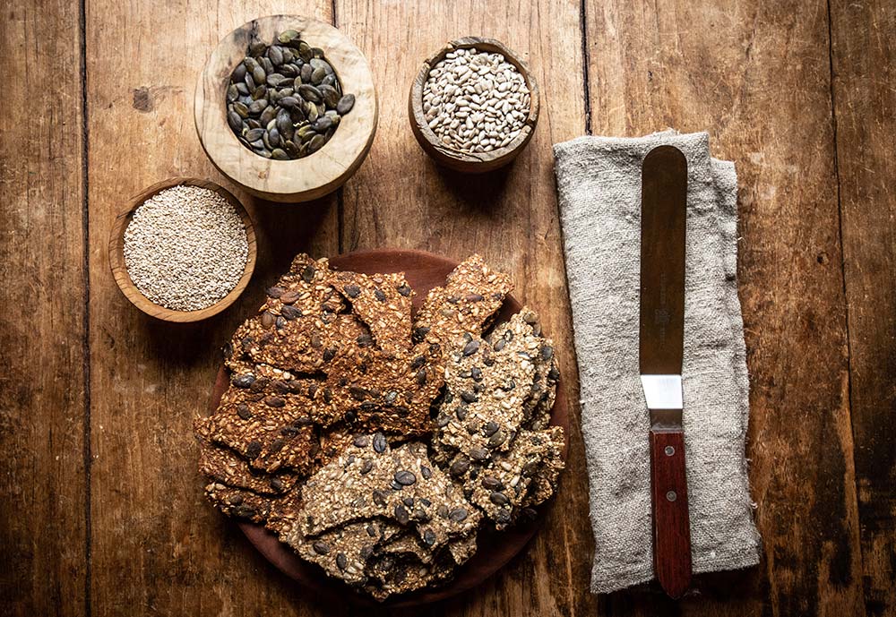 Shani was obsessed and kept making and baking different combinations of these Low Carb Crackers! The ratio of whole to ground sprouted seeds has been refined along with the flavour profiles and we now have 2 versions added to our Keto U-Bake product line.