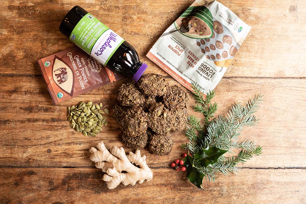 | We LOVE this embellishment of our PUMPKIN SPICE COOKIES By simply adding a heaping tsp Ginger Powder and 1 Tbsp Organic Molasses, they magically become Keto friendly Gingerbread Cookies. The added molasses adds less than 1 net carb/cookie and is high in iron, selenium and copper ~ all beneficial for healthy bones. |