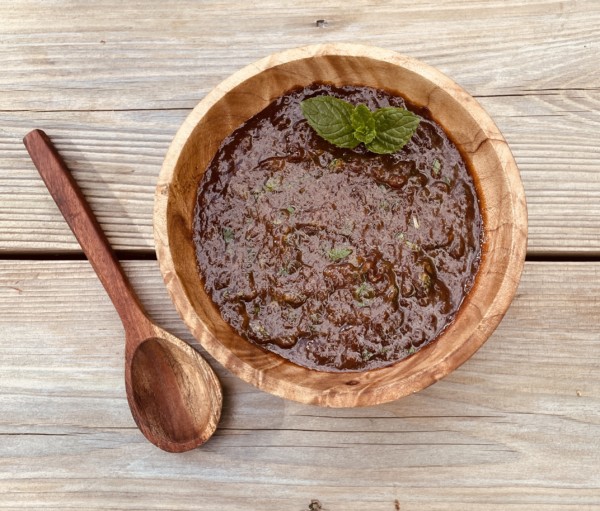 When the rhubarb & mint are popping up in the early spring, this is a great way to preserve them with a sweet, spicy & savoury chutney that pairs well with everything from curries to grilled meat or veggies, eggs & charcuterie boards.